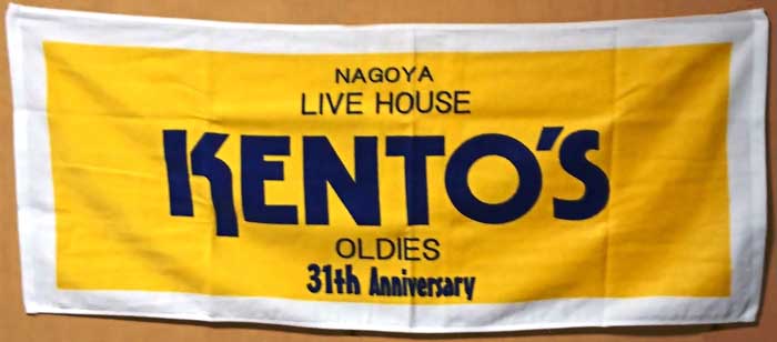 | この名古屋ケントス31周年記念タオル画像は、松山のYさんから2017年4月29日に送って頂きました。下記の縮小画像でも見えていると思いますが、文字は、上の行から、NAGOYA LIVE HOUSE KENTO'S OLDIES 31th Anniversary との文字があります。 ケントスのタオル関係と言えば、これまで「ケントスおもしろグッズ」ページに、けっこうな数を掲載してきました。その中で、例えば「13)松山ケントスのタオル」、「46)銀座ケントスのタオル」、「69)京都ケントスのタオル」など、なかなか印象に残るデザインもあります。 今回の名古屋ケントス31周年記念タオルも、シンプルなデザインや色合いながら、これはこれで、なかなかいいですね。特に、黄色地に大きなKENTO'S文字は、力強く感じます。ただし、グッズの収集家が実用で、この種のタオルを使うか、使わないかは、別の意味で悩ましい感じもします。蛇足ながら、私はケントスグッズの場合、ほぼ全部、新品のまま引き出しの中に入ってますが。(掲載日:2017年6月12日) |