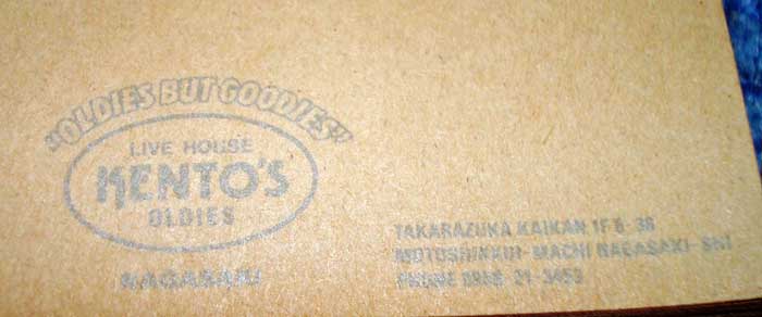 | 上記写真は、松山のYさんから2022年7月18日に送って頂きました。そのメールには、「博多ケントスの真鍮プレート」と書いてありました。大きさは高さが約9cm、横幅が約18cmあるようです。そして、この真鍮(しんちゅう)製ロゴマーク上部からの文字は、LIVE HOSE KENTO’S OLDIES とあります。あと、ご参考までに、このロゴマークのプレートは、私の記憶曖昧ながら博多ケントスの店内だけでなく全国の、どの店でも何枚かづつ掲示されていたような気がしますが。 ここからは私の蛇足ながら、博多ケントスといえば、当時、大阪周辺のケントス店についで、良く通った店です。また、福岡在住の友人知人などとも何回か行ったことや、バンドの皆さんが休憩時間にきさくに話して下さったことも覚えています。このように上記のプレートを見ると、もう何十年も前にもなりますが、店内でのノリノリの演奏や、楽しい語らいも蘇ってきました。(掲載日:2022年9月19日) |