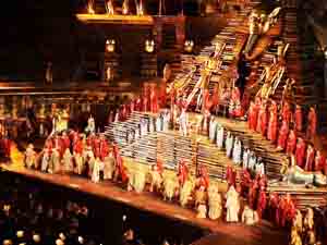 学校から「オペラ鑑賞の参加者受付中!」とチラシが掲示された。イタリアの北部ヴェローナで、毎年夏にかけて開催されるイタリア最大の野外劇場でのオペラ公演だ。演目は「アイーダ」。イタリア出身の作曲家、ヴェルディの最高傑作と言われ、大スペクタルの華麗かつ豪華な歌劇はエジプトが舞台となっている。 学校の掲示板のまわりはいつも2〜3人しかいないのに、この日は生徒たちで賑わっている。私も一応「何だろう」とその掲示板を見ることにした。チラシを見て「ふ〜ん、オペラ?・・・と言うことはイタリアのオペラ?」といつもの癖でぼんやり見ていたら、同じ教室で勉強しているメキシコのロドリゲスが隣にやって来て「ヒロシ、ヴェローナのオペラ一緒に見に行く?」と聞いてきた。 特に興味もなかったので「う〜ん」と中途半端な態度で私の視点は、廊下の方に移った。そして、傍にいるロドリゲスの顔をチラッと見ると何となく行きたそうな顔をしている。返事を保留し、急いで教室に戻る。ガイドブックを開いて驚いた。ヴェローナで開催される野外オペラのことが詳しく載っており、野外オペラのすごさが解説されていた。 費用