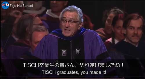 trump commo sense.) 注:YouTube<【英語スピーチ】ロバートデニーロ皮肉交じりの卒業式スピーチ 日英字幕>より引用・参照。 今回の言葉は、俳優のロバート・デ・ニーロが、ニューヨーク大学のTISCH(芸術学部)の卒業式で語られた内容からです。(上記のYouTubeリンク先を参照) これから今回の言葉の感想より、話された方について先に書いていきます。演説者は、ロバート・アンソニー・デ・ニーロ・ジュニア<英語: Robert Anthony De Niro Jr.(1943年〜) 、アメリカの俳優、アカデミー賞など多数受賞>です。