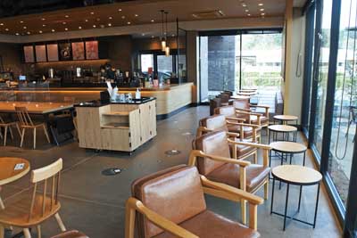 佐賀県北部では初のスタバ唐津店 佐賀県内のスターバックス店といえば、これまで(2021年11月で)佐賀市(4店)、鳥栖市(3店)、武雄市(2店)や基山町(1店)に合計10店舗ありました、そして、今回のスタバ唐津店は、県北部では初出店で、県内11店目として(最上記のデータ年月日通り)オープンしました。 また、この店の左側(北東側)には、メガネ屋チェーン店の「JINS(ジンズ)」が、同年月日にオープンしているようです。あと、この2店近くには(私は行ってませんが)、ザ・ビッグ唐津店の大きな建物が見えていましたので、この周辺へ県外などから行かれる場合、目印になると思われます。 ご参考までに、このスタバ唐津店から北側方向には、有名観光地でもある虹の松原や唐津城もあります。私は、車で先の観光地もウロウロしましたが、そんなに時間もかかりませんでした。ただし唐津城の次に、私が行った呼子や名護屋城跡へは、30分強かかった感じでした。以上が、大雑把なスタバ唐津店周囲の状況です。 他店を半周するドライブスルー店 (DH) スタバ唐津店は、その脇に国道204号線(唐津バイパス)があり、車利用者にとって便利な位置にあると思います。この国道は、佐賀県北部の動脈的な道路でもあるので、けっこう交通量も多かったです。 そのこともあるので、まずはドライブスルー(DH)を紹介します。(ただし、DHのやり方は、どの店も同じですが) 先の国道からスタバ店の駐車場に入ると、(写真1)の左側(地図上では北東側)にあるメガネ屋チェーン店の「JINS(ジンズ)」を半周する走路でスタバ店側へ向かいます。 その「JINS(ジンズ)」から直ぐの位置にスタバ店のDH用オーダーがあります。後はキャッシャー口で支払い、飲食を受け取れば出るだけのようでした。(写真1)の左側がDHの出口で、撮影場所の後方が国道となります。 念のために、私は唐津店では、DHを利用していません。ただし、なぜ珍しくも何ともないDHの走路のことを、このページにわざわざ書いているかついてです。それは、九州各店のスタバ店(独立店舗の場合)では、スタバの建物自体を半周するのは、どこも多いのです。しかし、このスタバ唐津店のように他店の建物を半周する走路は、少なかったようでした。 店内全部ピカピカながらも落ち着いた雰囲気と大きな絵について 既に上表や本文にも書いてます通り、スタバ唐津店にはオープンして約3ヶ月後に行きました。店舗の内外どこもピカピカ、新品ばかりでした。何かを触ったり、椅子に座ったりするのがもったいない(笑い)ような感じさえしました。 店内仕様は、九州各県の独立店舗(たいていDH店)と似た造りでした。白木風のカウンター。テーブル・椅子などは、使いやすいだけでなく、見た目にも優しいのではと思いました。あと、天井も高いのが、疲れずに良かったです。 また、各壁には、絵や写真も掲示してありました。その中で、サービスカウンターに向かって右方向奥、(写真2)の右端側の壁にある大きな絵(写真8)に目がいきました。この大きさは、目測で高さが1m50 cm弱、横幅が3m弱ありそうな感じでした。 この当時(2022年)私は、九州各県80店近く巡っていましたが、この絵を見たのは初めてだったと思います。手前側に花や葉っぱが大きく描かれていました。私は、この絵の前で、なんとなく、ゆったりと眺めていました。 なお、今回スタバ唐津店へ行った時は、次に行く名護屋城跡などの見学予定もあったので、せわしい感じで店を出ました。また、スターバックス唐津店へ行く機会あれば、ゆっくりしたい店だなあと思っています。 関係ページ: ・スターバックス コーヒー ジャパン: Starbucks Coffee Japan ・スターバックス・唐津店(公式サイト) |