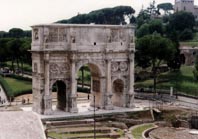 コンスタンティヌスの凱旋門とコロッセオがいい位置の所に来たので写真を撮りました。互いにのどが渇いていたので、軽トラック屋台の飲み物屋で各自水やコーラを注文したが、4人で18000リラなのでなんか高く感じました。ここで、小休憩しながら、路上を色々と観察しました。 パトロールが来たら、店をたたんだ露天商が直ぐ再開したり、黒帽黒服姿のユダヤ教らしき人が歩いたり、すごいスピードで走る車など、短時間だったが、なかなか興味深いものでした。 小休止も済み、コロッセオへ歩きだした。コンスタンティヌスの凱旋門の横に来て、にいさんがビデオをゆっくりと上下した。コッロッセオ前には古代ローマ皇帝風の衣装や剣を持った芸人が子供達を盛んに手招きして記念写真に納まっていた。赤い馬車を引いた馬と御者が少し退屈そうな顔で客待ちしていました。
