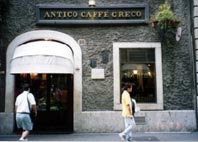 しばらく、通りを歩くと五叉路の交差点に出てきました。「タカちゃん、地図で確認して、コンドッティ通りはどこ?」「あの方向」「間違いないね」と、昨日道を間違えたので少し神経質に聞いていまた。 コンドッティ通りはガイドブックに「日本なら銀座みたいな通り」と書いてあったので、その先入観を持っていました。しかし、実際には幅10メートルないような通りで、両端には横並びのビルのため狭く感じましたた。しかも、日差しの関係でビル影ができ、通り全体が暗く感じました。 ただ、人通りは急ににぎやかになり、今までの他の通りとは明らかに違っていました。コンドッティ通りを歩きながら、カメラを構えながら見ると、私でも知っているベネトン、フェラガモ、エルメス、ルイ・ヴィトン、ヴァレンチノなど有名な店が沢山ありました。今は暗いコンドッティ通り奥には、そこだけ南国の陽光がスポットライトのように輝やいた『スペイン階段』が見えてきました。 『スペイン広場』前近くで通りの終わりかけの所には、超有名なカフェ・グレコがありました。この店の創業は1760年で約200年間世界中から人々が立ち寄り、その中には作家のゲーテ、スタンダール、キーツ、音楽家のメンデルスゾーンなども来ていたそうです。今なら可能性は全くありませんが、このような人が何を飲みながらどんな話をしたのか、聞いてみたいような気がしました。 私達は、時間の関係で店には入りませんでしたが、店内は古典的な仕様で、店名のカフェ・グレコは「ギリシャ人のカフェ」と言う意味だそうです。まあ、日本ではさしずめ「ギリシャ人の喫茶店」と言うことでしょうか。でも喫茶店なのに、これほど有名で名所になっているのは、やはりローマの老舗だからでしょう。